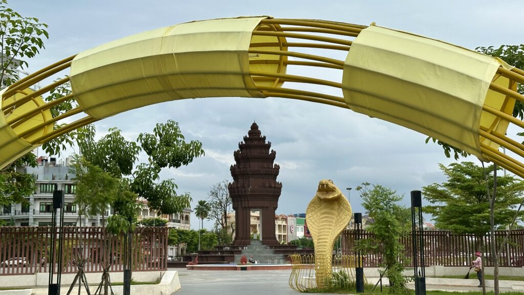 Independence Monument – Inaugurated to honor the Cambodian patriots who fought for independence from French colonial rule, the monument stands as a testament to the resilience and determination of the Cambodian people. The country gained independence from France in 1953. The monument’s design is deeply rooted in Khmer architectural traditions, drawing inspiration from iconic structures like Angkor Wat. Intricate motifs and carvings adorn the monument’s surface, showcasing the skill and artistry of Cambodian craftsmen.