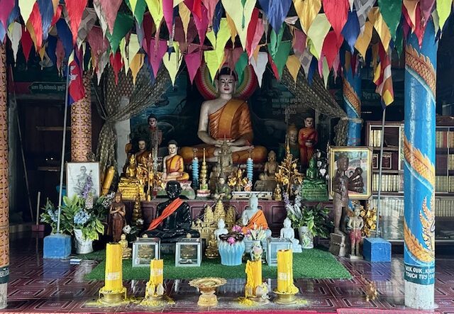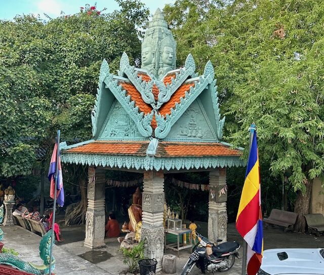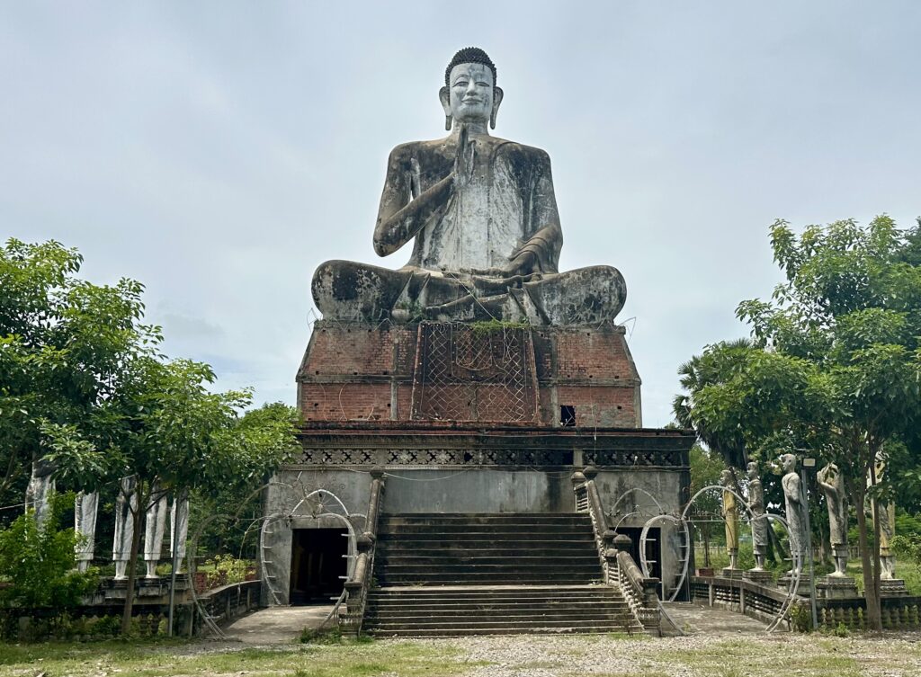 Lok Ta Dumbong Kro Nhong – This was the first site we encountered on reaching Battambang. Easily recognizable with its bright colors, the giant statue of a man holding a black stick, stands at a prominent roundabout and is a significant landmark in Battambang.
