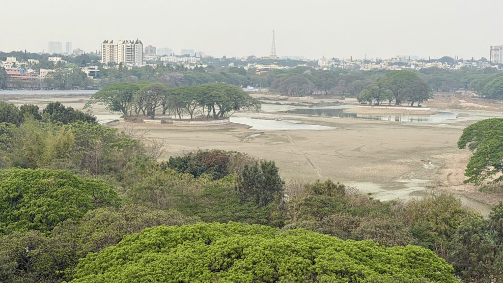 Ulsoor Lake – also known as Halasuru Lake, is one of the largest lakes in Bangalore covering about 50 acres. We could see this lake from the terrace of our hotel Raddison. There was not much water in the lake when we visited in the month of February, as it was after the monsoon season.