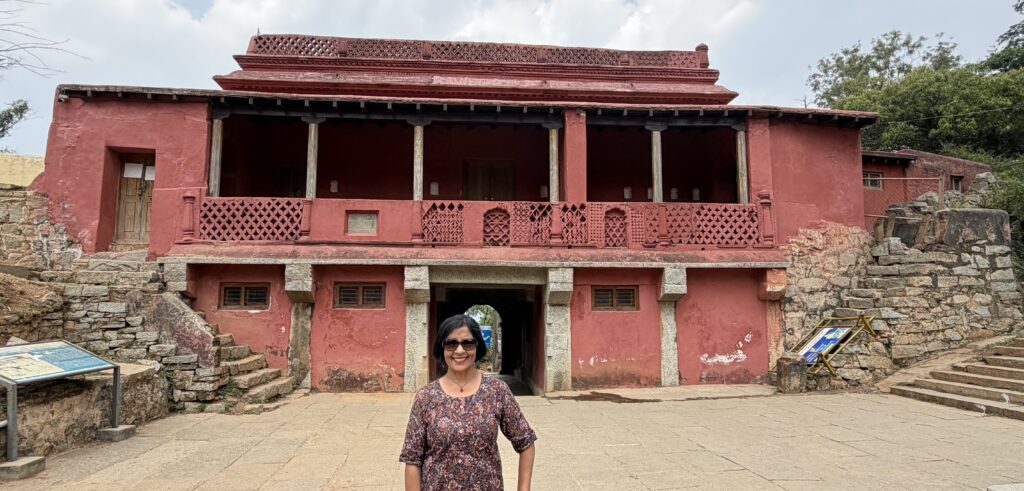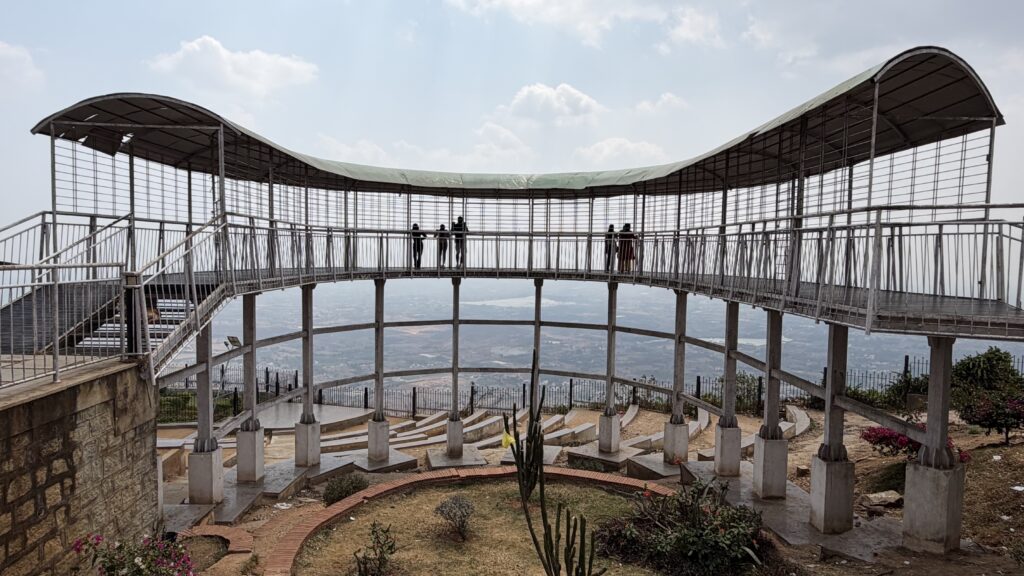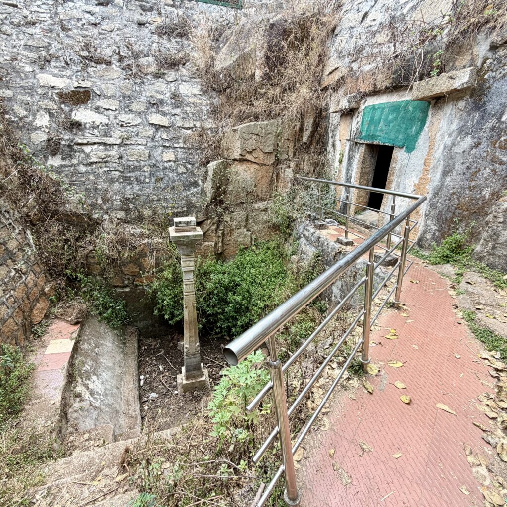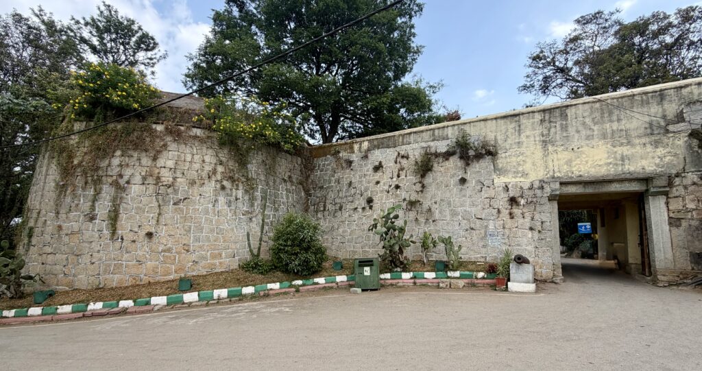 We had hired a car and driver, and the journey from Bangalore took nearly two hours. After parking, we purchased entry tickets (₹100/person). There are a few sites to see here after passing through the massive Fort walls. The fort walls at Nandi Hills, known as Nandidurg, are a historic 18th-century fortification, originally built by local chieftains of the Ganga Dynasty, with significant additions by Chikkaballapura Paleyagars. The walls were significantly strengthened by Hyder Ali and Tipu Sultan.