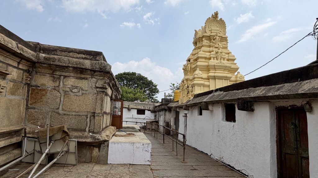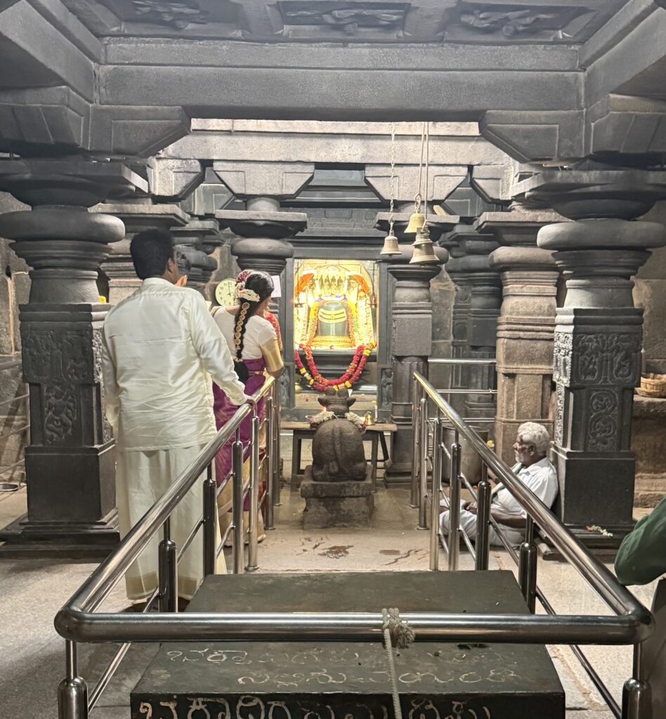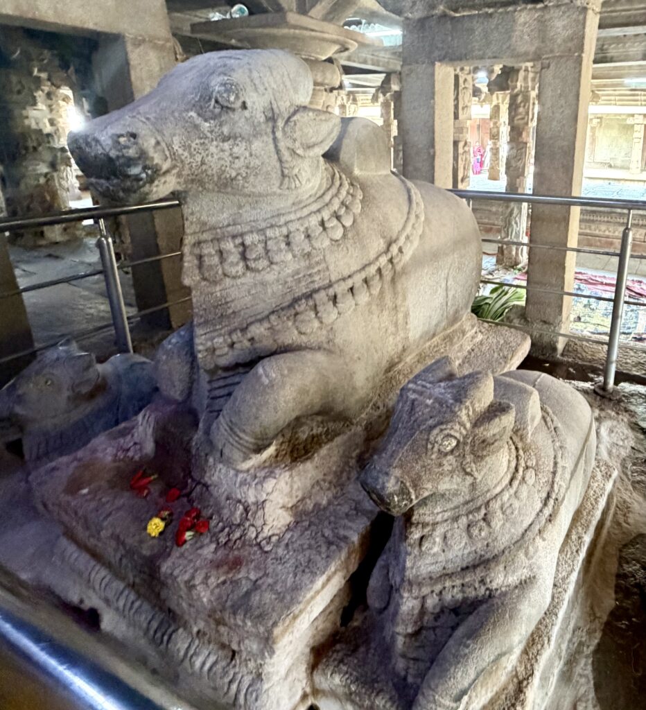 BhogaNandeeshwara Temple and Arunachaleswara Temple — After spending a couple of hours at Nandi Hills, we drove down to visit these twin Shiva temples located at the base of the hill. Dating back to the 9th–10th centuries, the temples are renowned for their beautiful architecture and intricate carvings. BhogaNandeeshwara is the older of the two, while Arunachaleswara was built shortly after and later expanded during the reign of the Chola Empire. The temples share a spacious courtyard and an open sabha-mandapa. Although architecturally similar, the newer Arunachaleswara shrine features more intricate artwork.