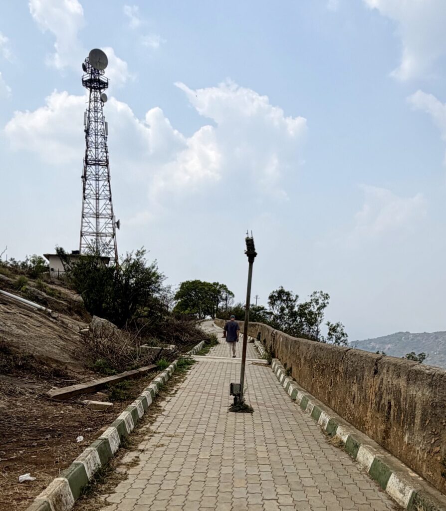 Highest point of Nandi Hills – is about 1.5 km from the main area. You have a couple of options to reach the top :