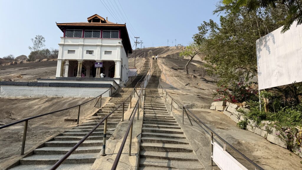 To reach the Bahubali statue at the top of the hill –