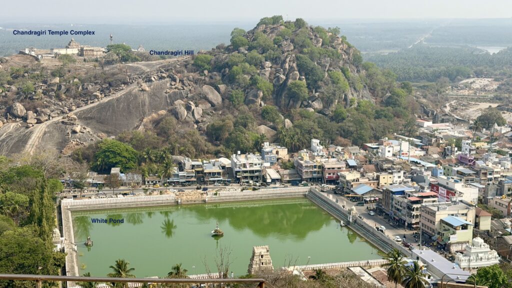 As you climb up the steps, you get a fantastic view of the town below and the Chandragiri hill across with a view of Chandragiri Temple Complex. A number of Jain Basadis are found on the hill. You will also get a great view of the large pond located in the center of the town. Shravanabelagola derives its name from the Kannada words meaning White Pond of the Shravana. Belagola literally means white pond, referring to the large pond located in the center of the town.