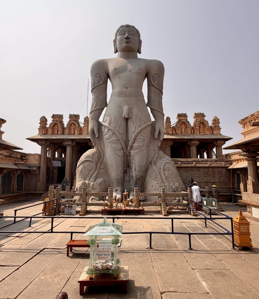 Shravanabelagola – Located 150 km from Bengaluru and 84 km from Mysuru, Shravanabelagola is one of the most important Jain pilgrimage centers in India, famous for the towering monolithic statue of Bahubali located on Vindhyagiri Hill. Standing about 58 feet (18 meters) tall, the statue—known as Gommateshwara Statue—was carved around 981 AD and is considered one of the tallest free-standing monolithic statues in the world. A major event that happens here, is the Mahamastakabhisheka, held once every 12 years, when the statue is ceremonially bathed with milk, saffron, sugarcane juice, and flowers.