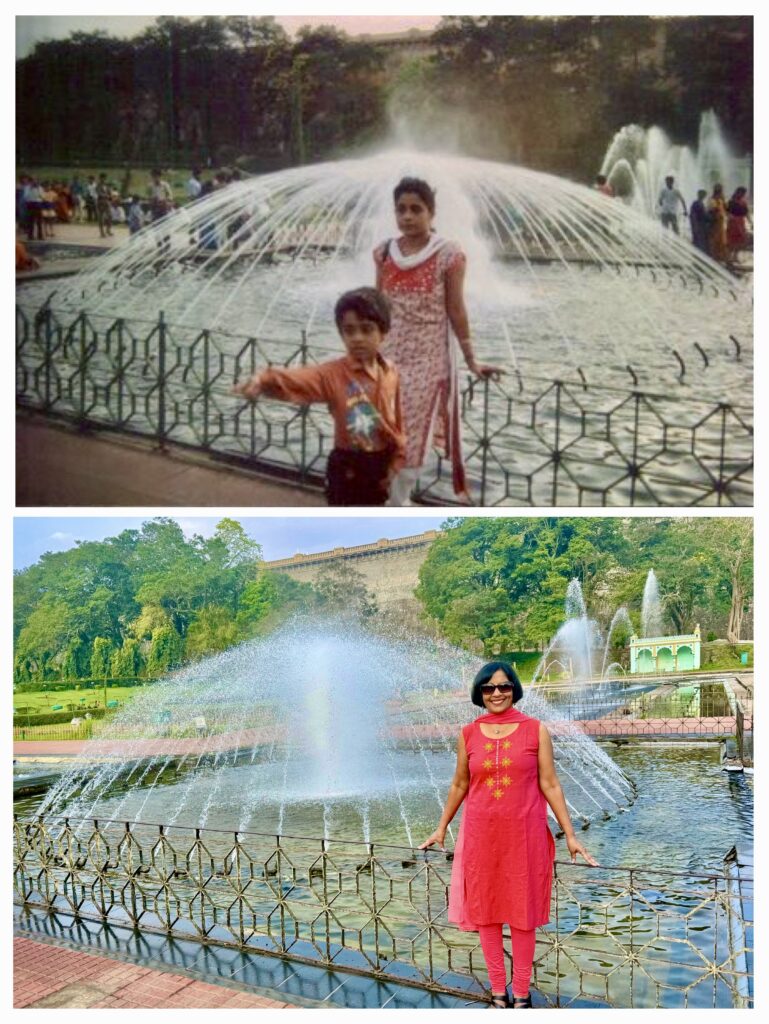 Brindavan Gardens – Old memories, New frame – We first visited Brindavan Gardens back in 1991, and I wanted to recreate a memory from near one of the fountains. To my surprise, the fountain from 35 years ago was still in the same spot, allowing me to perfectly recreate the scene.