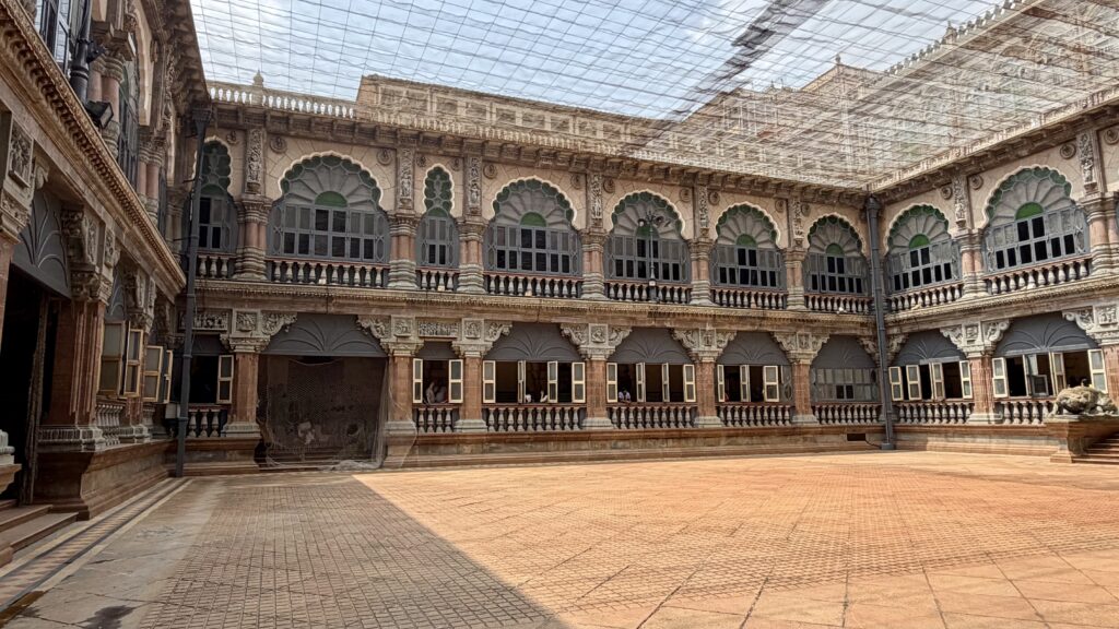 - Inner Courtyard – The open-air inner courtyard frequently referred to as the Wrestling Courtyard, was historically used for traditional wrestling matches during the Dasara festival. Completed in 1912, the structure features intricate carved pillars and open spaces and is surrounded by the main palace building, which includes the Durbar Hall, Kalyana Mantapa (wedding hall), and Doll’s Pavilion.