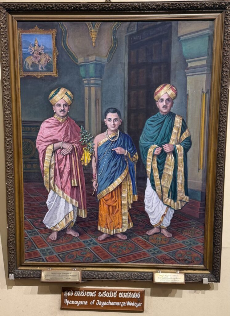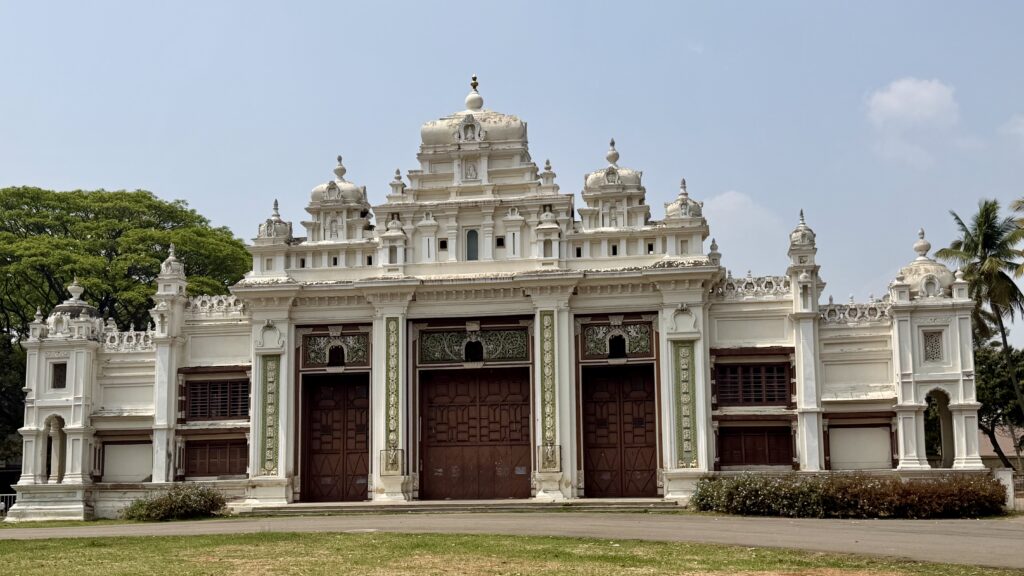 Sri Jayachamarajendra Art Gallery – formerly known as Jaganmohana Palace, this is a historic royal mansion, arts museum, and auditorium located about 200 meters west of Mysore Palace. Construction began in 1856 and was completed in 1861, making it one of the oldest modern structures in the city. The palace served as an alternative residence for the Mysore royal family whenever renovations or construction were underway at Mysore Palace. The last time the royal family stayed here was in 1897, following a fire that destroyed the old Mysore Palace, during the reign of Maharaja Krishnaraja Wadiyar IV.