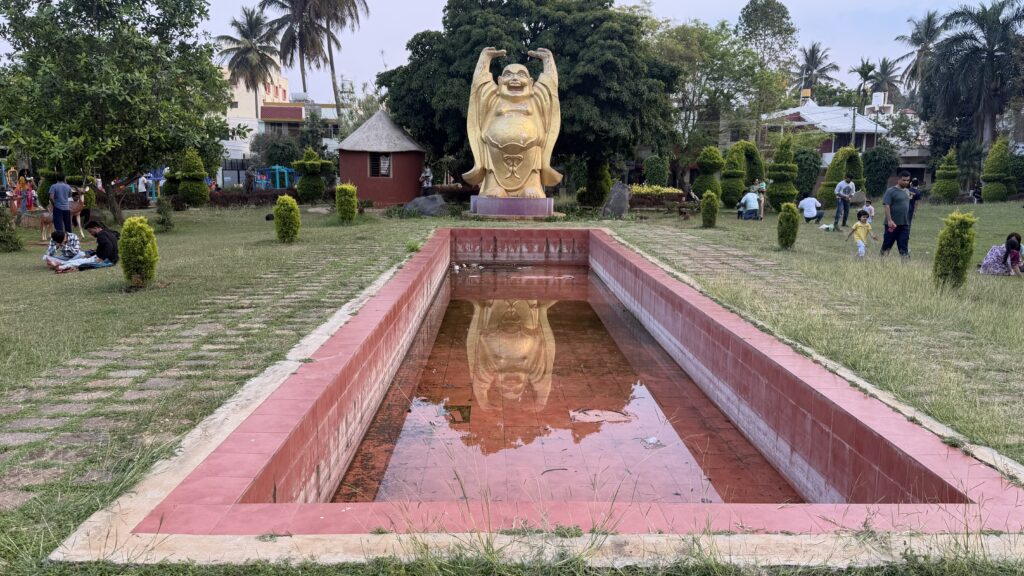 Sanjeevani park – is a charming urban park located in the heart of the city. The park’s centerpiece is a massive Laughing Buddha statue, which adds a cheerful vibe. It also features swings and play rides, making it a popular spot for children. Surrounded by lush greenery, the park offers city dwellers a refreshing escape, providing fresh air and a peaceful environment to relax and unwind. There were also a couple of ostrich running around in an enclosed space.