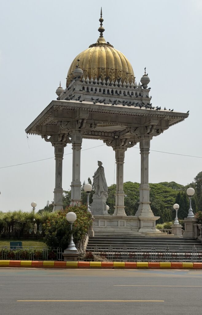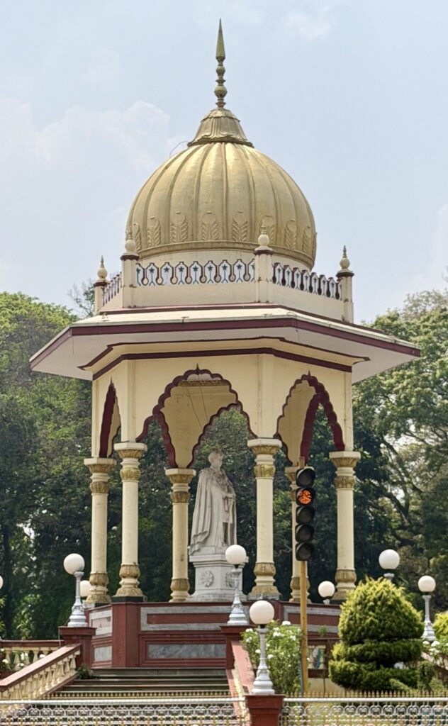 - Chamarajendra Circle – Built in 1920, this circle is located in front of the Mysore palace’s north gate and is a well-known landmark. It has a marble statue of Maharaja Chamarajendra Wadiyar under a golden-domed pavilion. He was a popular and hospitable king who was a keen horseman and a patron of sports and arts.