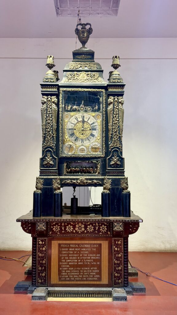 The Art Gallery houses one of the largest collections of artifacts in South India, with over 2,000 paintings in various Indian styles such as Mysore, Mughal, Shantiniketan and even miniature artworks painted on grains of rice, viewable only through a magnifier. Beyond paintings, the gallery showcases a fascinating collection of weapons, musical instruments, sculptures, brassware, antique coins, and currencies. There is a French clock featuring a miniature parade of soldiers, with drums marking the seconds and a bugle indicating the minutes.
