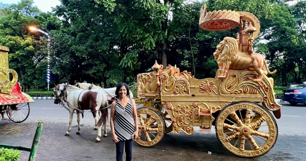 Colorful Horse Carriages – The street Opposite the Victoria memorial was lined with brightly coloured horse driven carriages.