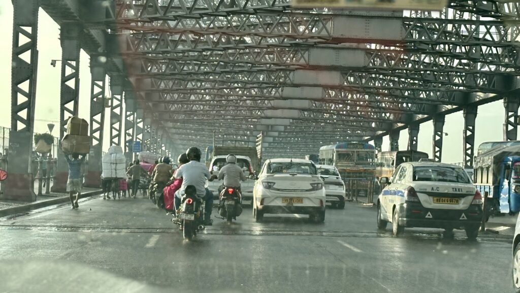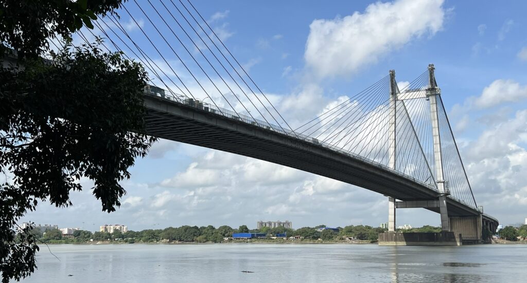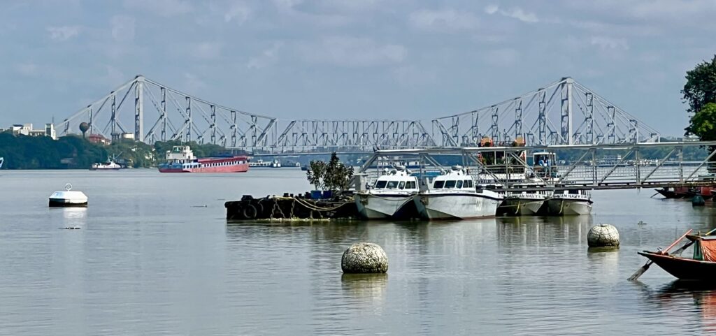 The river was within walking distance, just behind James Prinsep Ghat. From the riverbank, we could see both the Vidyasagar Setu and the Howrah Bridge. The Vidyasagar Setu is a cable-stayed bridge that opened in 1992 and is located close to Prinsep Ghat.