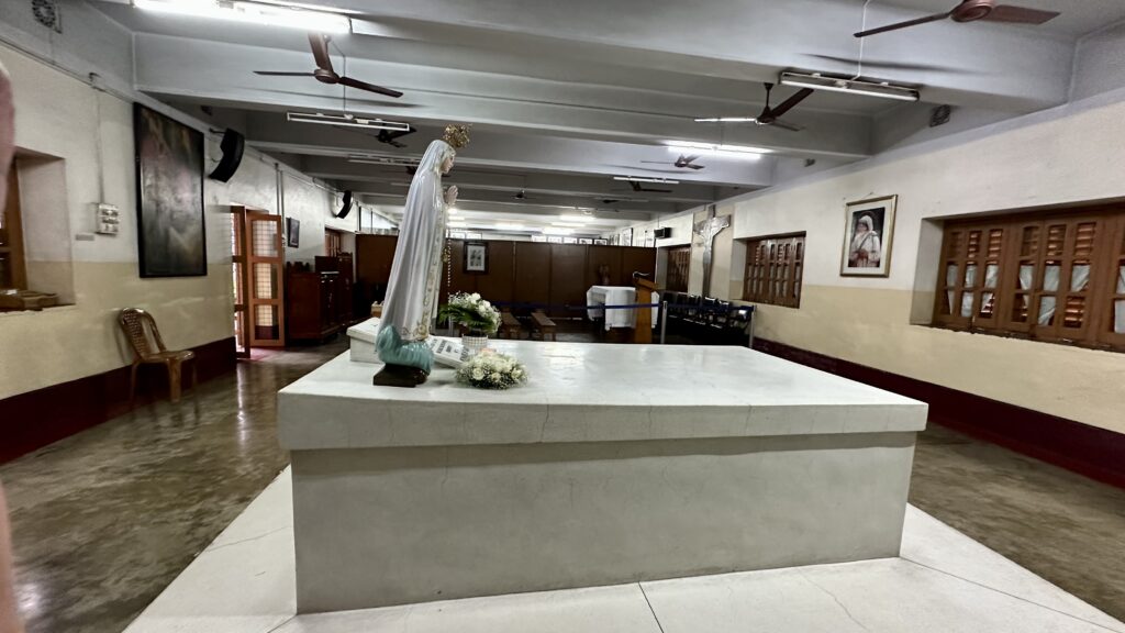 Mother’s Room (First Floor) – On the first floor is Mother Teresa’s simple living and working space, preserved and open to visitors. The room contains a bed, a desk, a cupboard, a shelf, a table, and a bench, reflecting the modest lifestyle she led. Photography not allowed inside.
