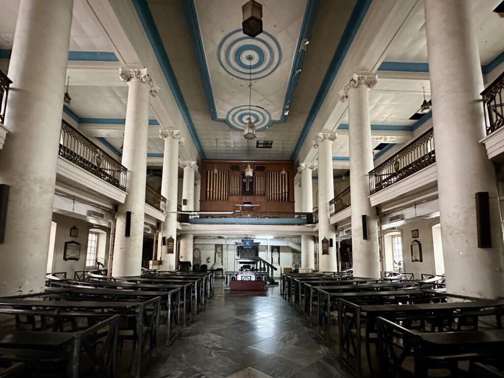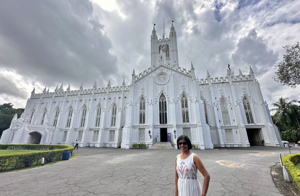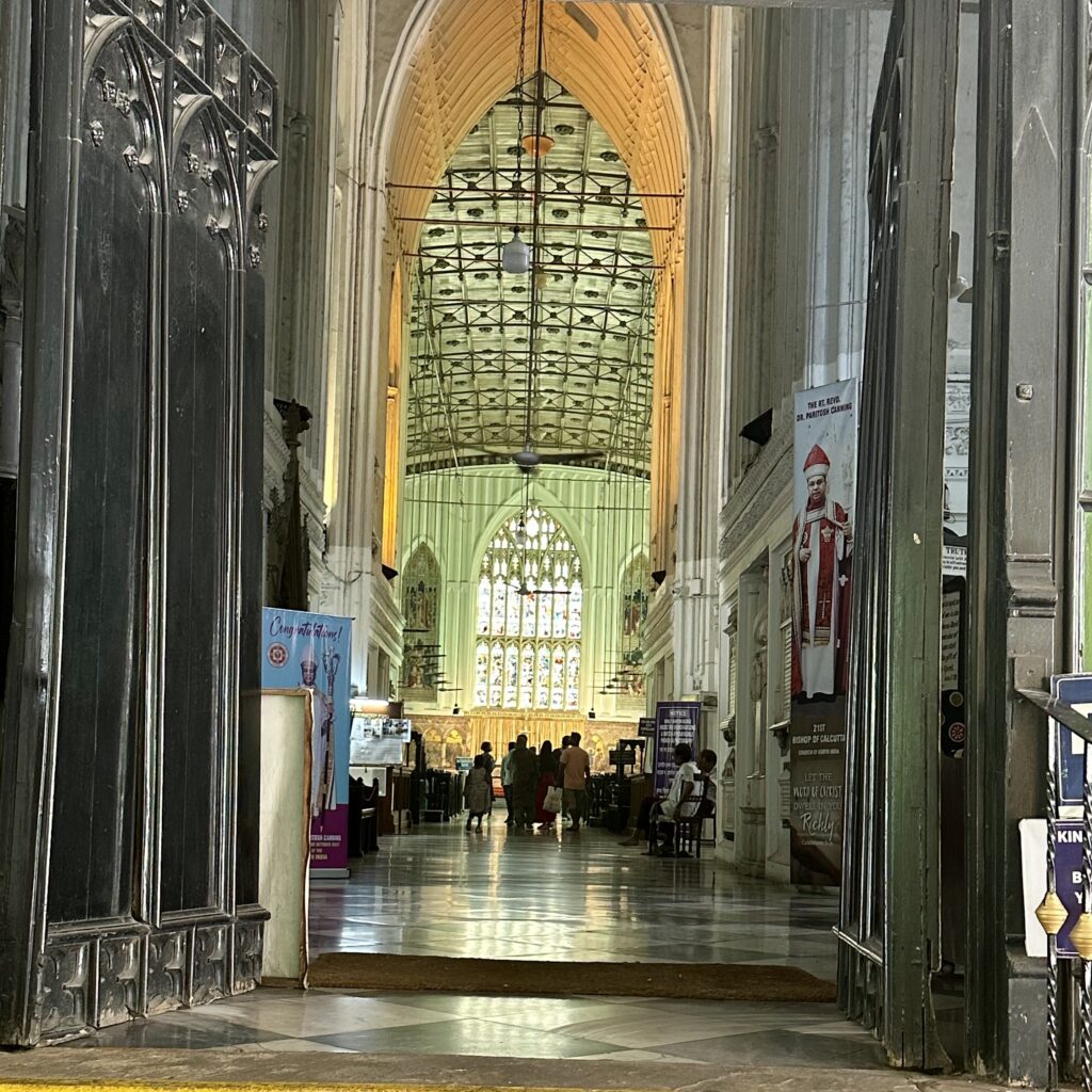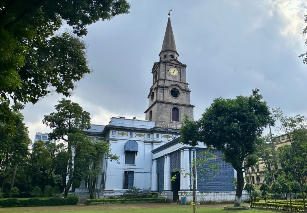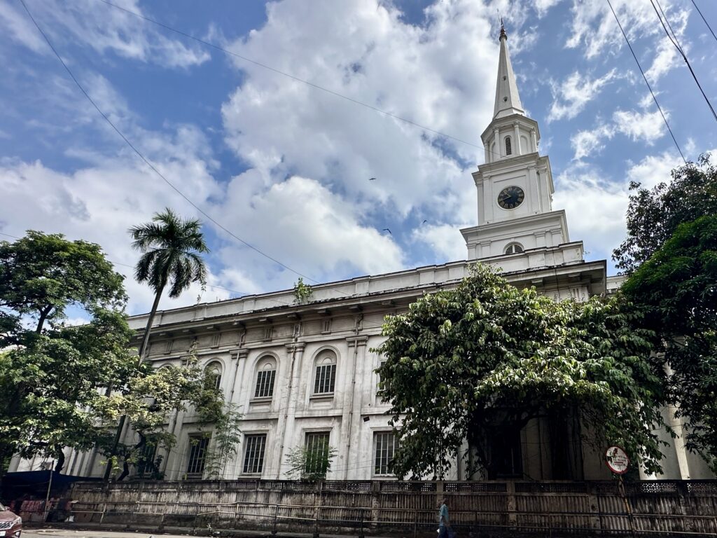 St Andrew’s church – We walked from the Writers’ Building to the next street corner, where we found ourselves in front of St. Andrew’s Church. Built between 1815 and 1818, this Presbyterian church features an impressive white façade supported by tall Doric pillars and stands in the busy BBD Bagh area. While old paintings and photographs capture the church in all its former grandeur, today’s crowded surroundings make it difficult to fully appreciate its beauty.