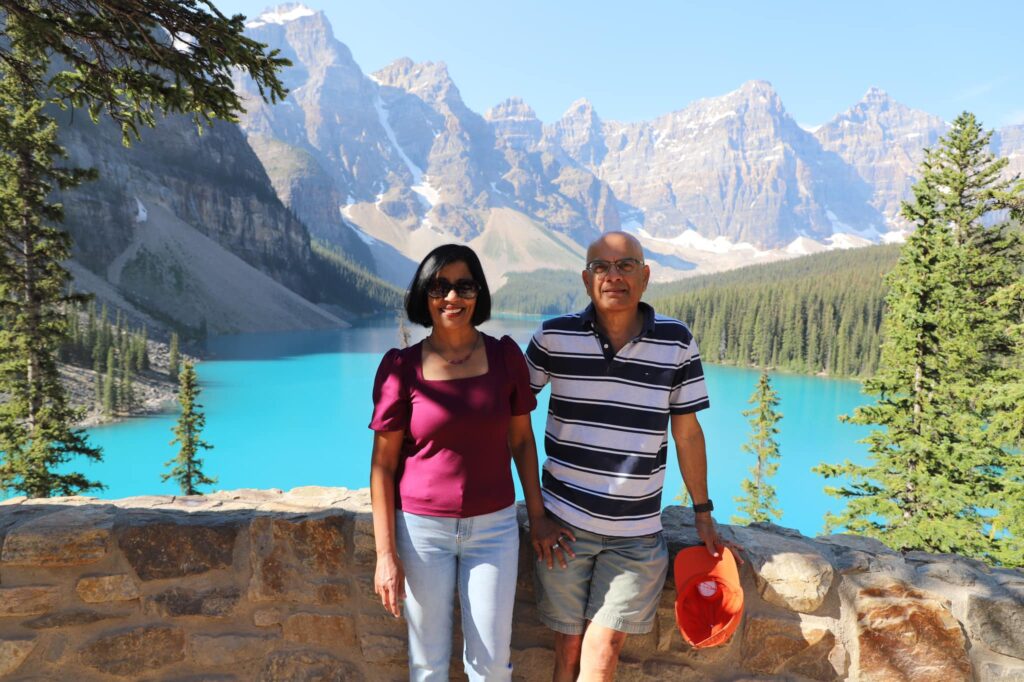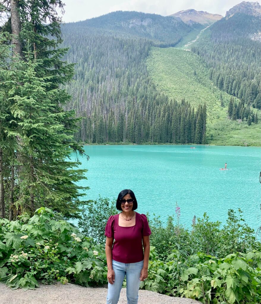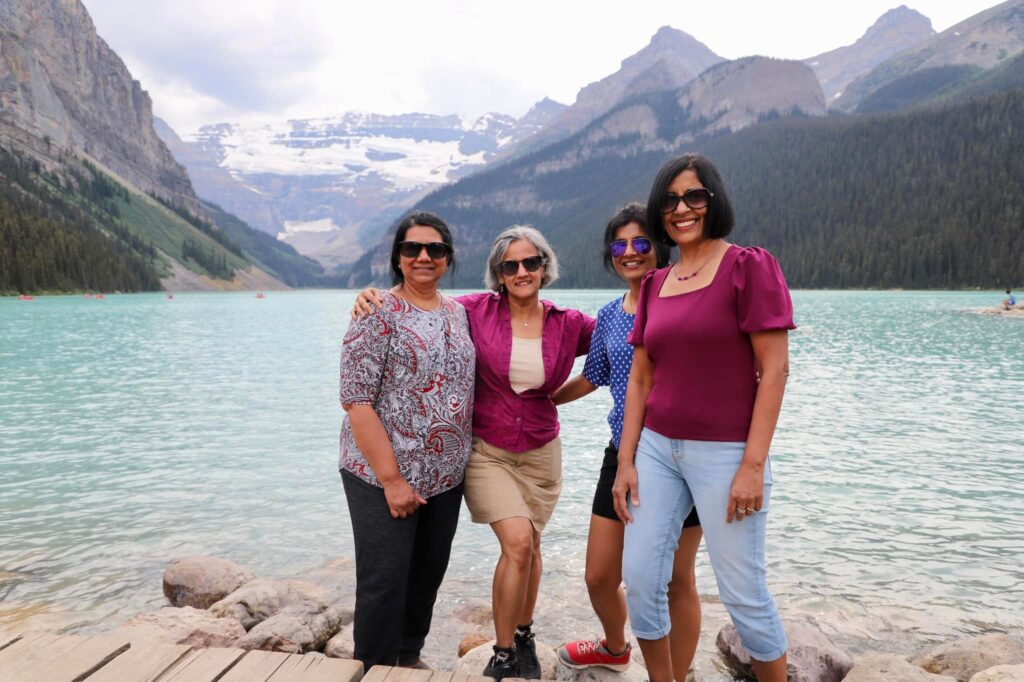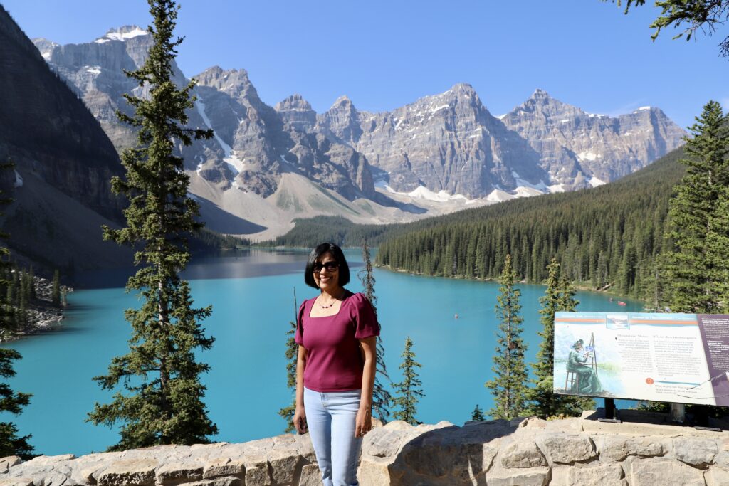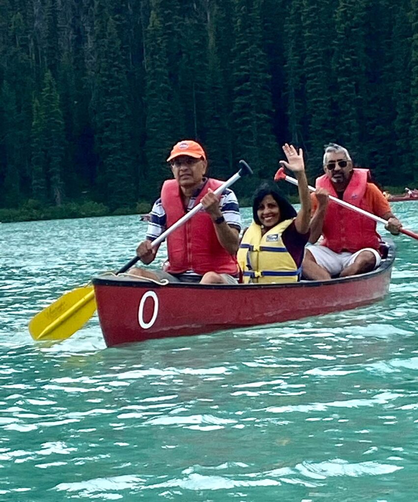 Lake Louise – Another glacial lake and chance to see turquoise blue waters. Lake Louise was our last stop on Day 3. There are many hiking trails in Lake Louis. A few of us just went on the leisurely hike around this beautiful lake enjoying the stunning mountain setting. The more energetic ones, took on the hike to the Fairview Lookout, a 1.5-mile hike with an elevation gain of 541 feet. You’ll see excellent views of Lake Louise and the gorgeous Fairmont Chateau. You can rent a Canoe here too.