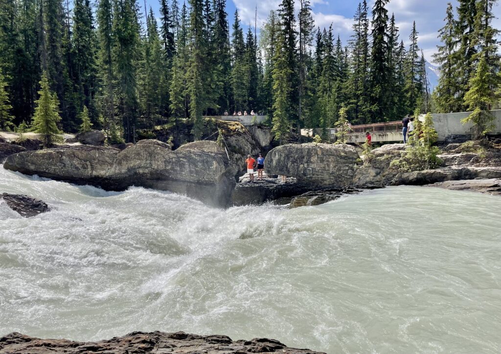 Natural Bridge – It is located just off the road leading to Emerald Lake and the two attractions can be combined. Once on the Emerald Lake Road continue another 2 km’s to the junction for the access road to the Natural Bridge parking lot. A short trail leads to the Kicking Horse River where you can get a great view of the bridge. The Natural Bridge is a limestone rock formation that spans across the Kicking Horse River. Over time the Natural Bridge will erode and collapse, definitely not in our lifetime!