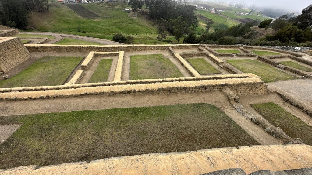 • Farther into the complex, there is an expansive open space where large numbers of devotees gathered for ceremonies. Just beyond this, a fragment of Inca road remains, part of a network that once connected religious and administrative centers across Ecuador, Peru, Colombia, Bolivia, Argentina, and Chile. Other features include ceremonial baths, agricultural terraces, and grain storage areas.