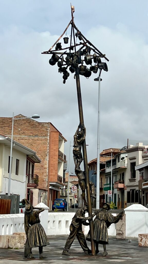 Vado-bakery neighborhood – It is no longer a bakery place but it had some interesting art work, one of them depicting the game of polo encebado – greased pole that has been made slippery with lubricants and thus difficult to grip. One has to climb the pole to get to a gift. We got a wonderful view of the Tomebamba river that flows through the center of the city. It divides the old town from the more modern area of the city.