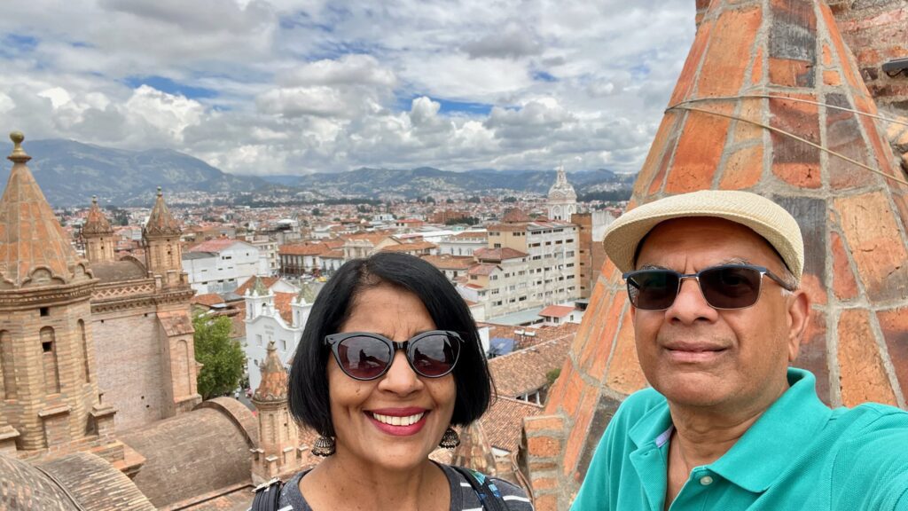 This beautiful city is located in southern Ecuador. Designated a UNESCO World Heritage Site, Cuenca’s cobbled streets, churches and plazas take you back to colonial times. One can wander around the narrow streets exploring the many squares, parks, and churches. The historic Central Plaza has the Old and New Cathedral as well as many cafés and restaurants. New Cathedral of Cuenca was built in the 1960s and you can get a view of its three beautiful blue-tiled domes from the San Francisco Plaza behind. We climbed to the top of the dome (165 steps) to get a view of the main plaza.