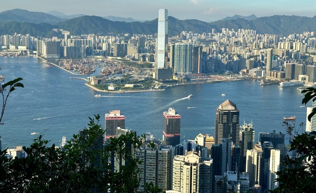 View of the skyscrapers and the water from Peak Galleria observation deck.