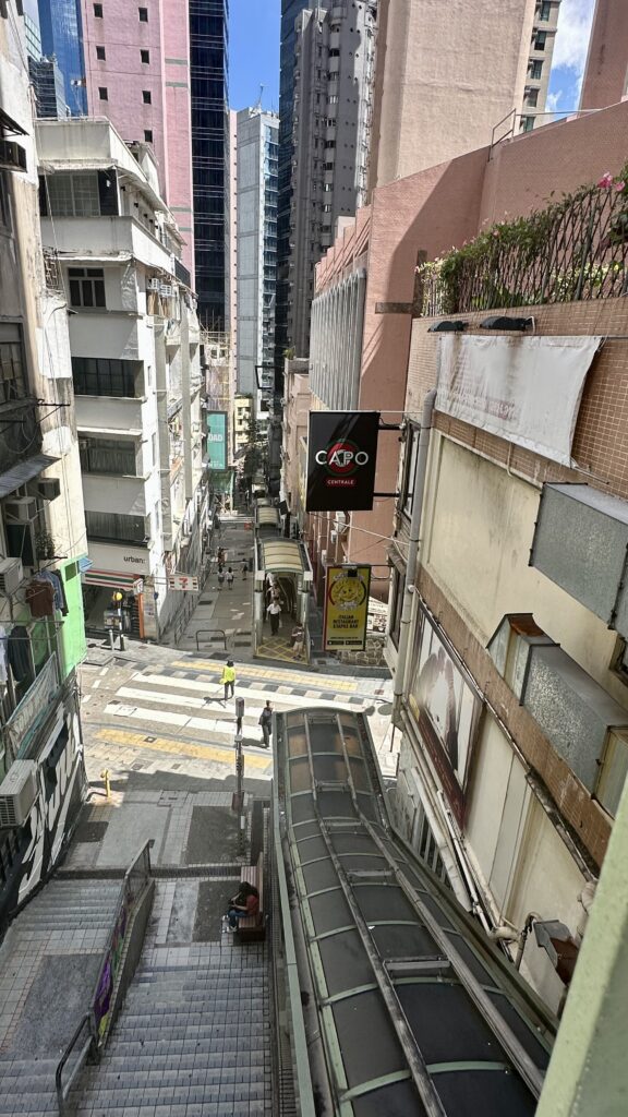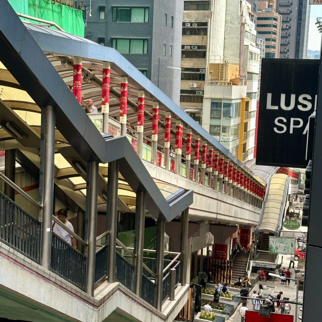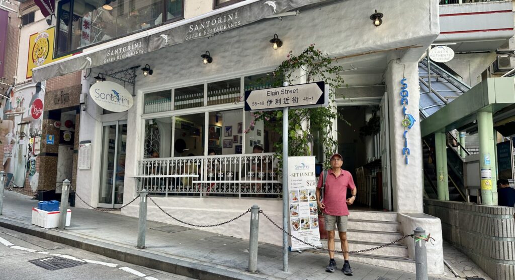 Elgin Street – This is another stop along the Central-Mid-Levels Escalator. This is a lively street famous for its diverse range of restaurants and bars, many with outdoor seating, contributing to its bustling atmosphere. We got off here and walked around reading all the menu outside restaurants and settled for lunch in the Greek restaurant.