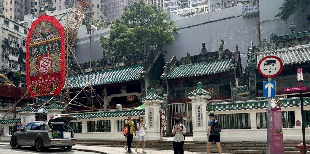 Man Mo Temple – is a 10-15 min walk from Elgin street. The temple, distinguished by its green tiled roof, was constructed between 1847 and 1862 by wealthy Chinese merchants. It has three blocks – Man Mo Temple, Lit Shing Kung and Kung Sor. Visitors frequent Man Mo Temple to pray for prosperity and success offering incense sticks, vegetables and symbolic round fruits such as oranges.