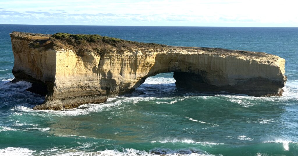 Port Campbell National Park, London Bridge – now often called London Arch, this dramatic natural rock formation was originally a double-span natural bridge connected to the mainland. The span closest to shore collapsed in 1990, leaving an isolated archway. Two tourists were stranded on the outer section before being rescued by helicopter.
