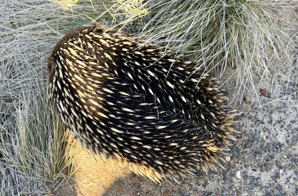 On the path leading to The Razorback, we saw the Short Beaked Echidna. This unique egg-laying mammal is found across Australia and parts of New Guinea. Covered in spines and fur, it uses a long snout and fast, sticky tongue to catch insects. Echidnas are powerful diggers with strong claws and can curl into a ball for protection. Although widespread, their population is affected by habitat loss and introduced predators.