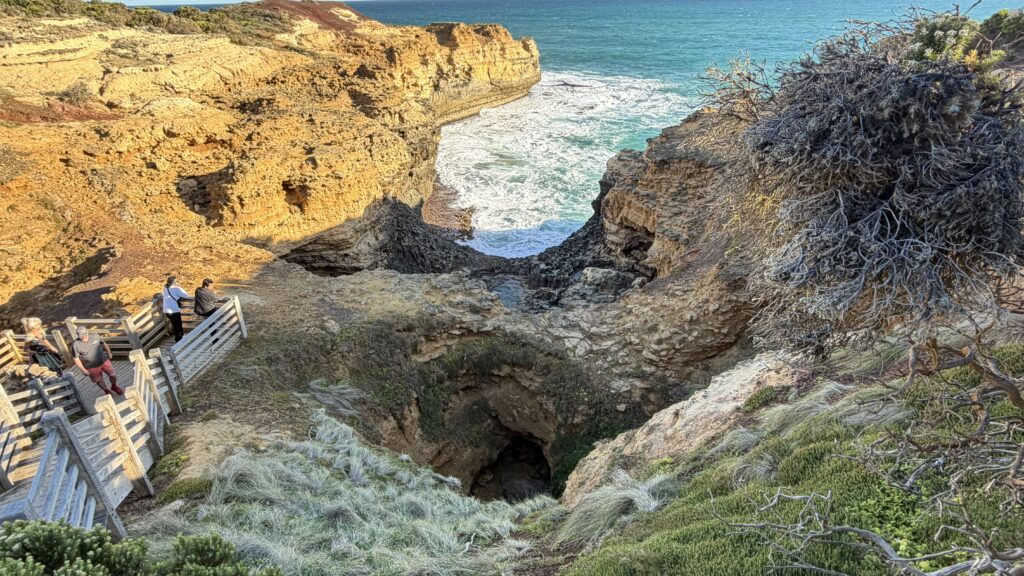 A short walk from the car park leads visitors along a well maintained path to an upper viewing platforms where you will be treated to spectacular views of the rugged coastline and Southern Ocean. Continuing further down a set of steps will lead to the lower platform from where you can enjoy the Grotto. The round trip to the lower platform and back is about 700m.