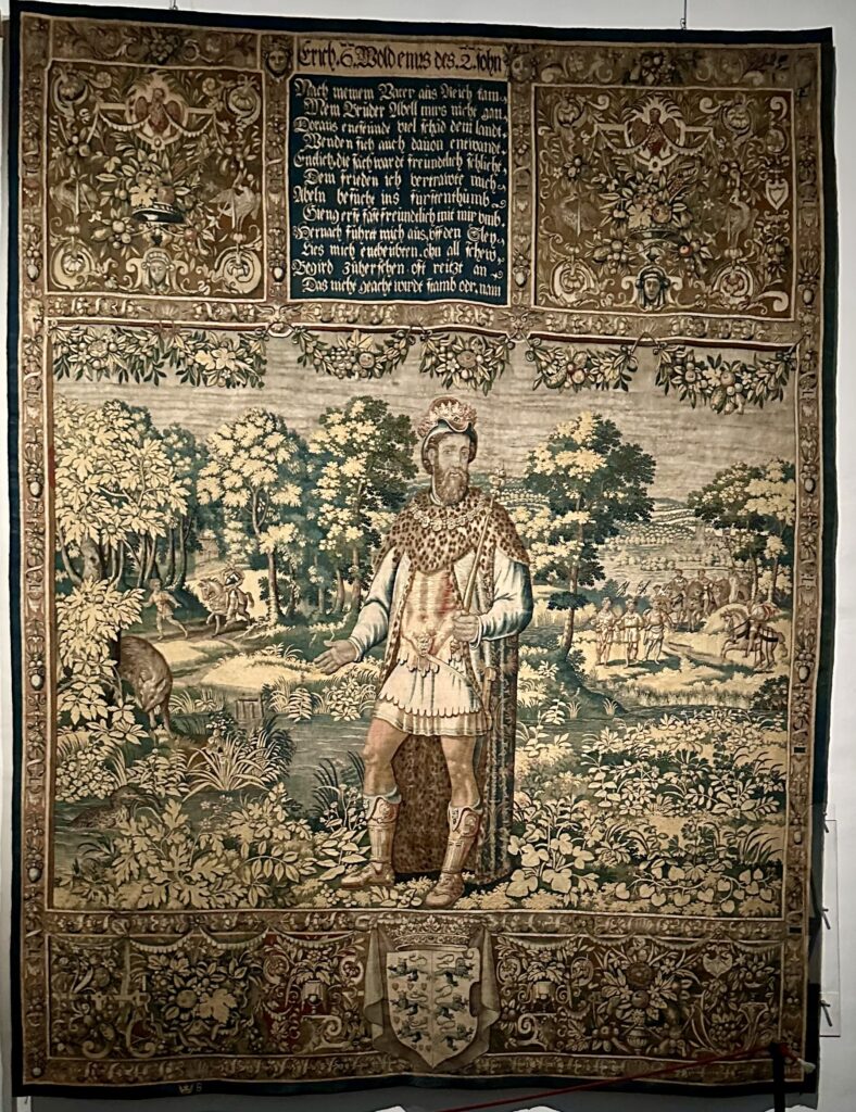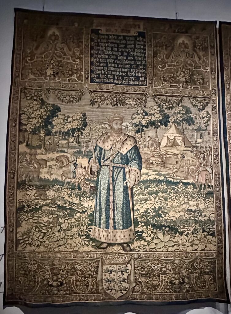 The tapestries are known as Kronborg Tapestries. They were part of a grand series of 43 tapestries commissioned by Frederik II to adorn the Great Hall during lavish feasts. Here are pictures of 3/15 that have survived.