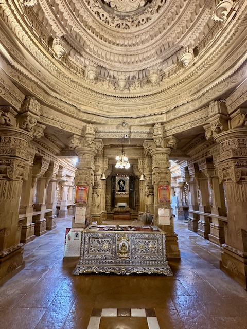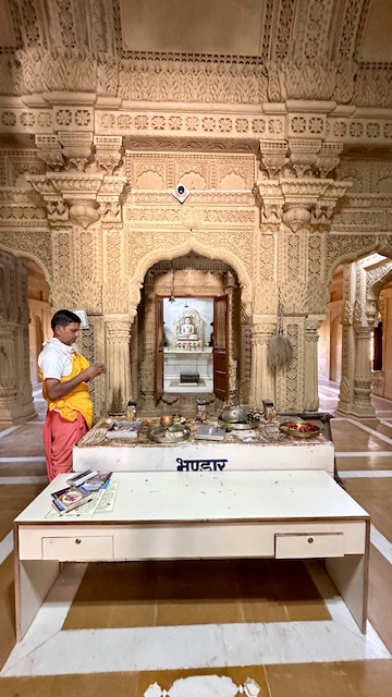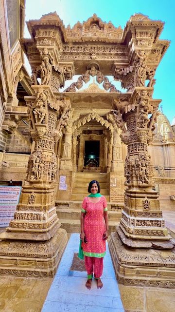 Jaisalmer Fort, Chandraprabhu Jain Temple – Our next stop was this beautiful Jain temple dedicated to the eighth Jain Tirthankara, Lord Chandraprabhu. This temple is part of a complex of Jain temples within the fort. The temple complex was originally built between the 12th and 16th centuries and is made of yellow sandstone.