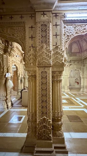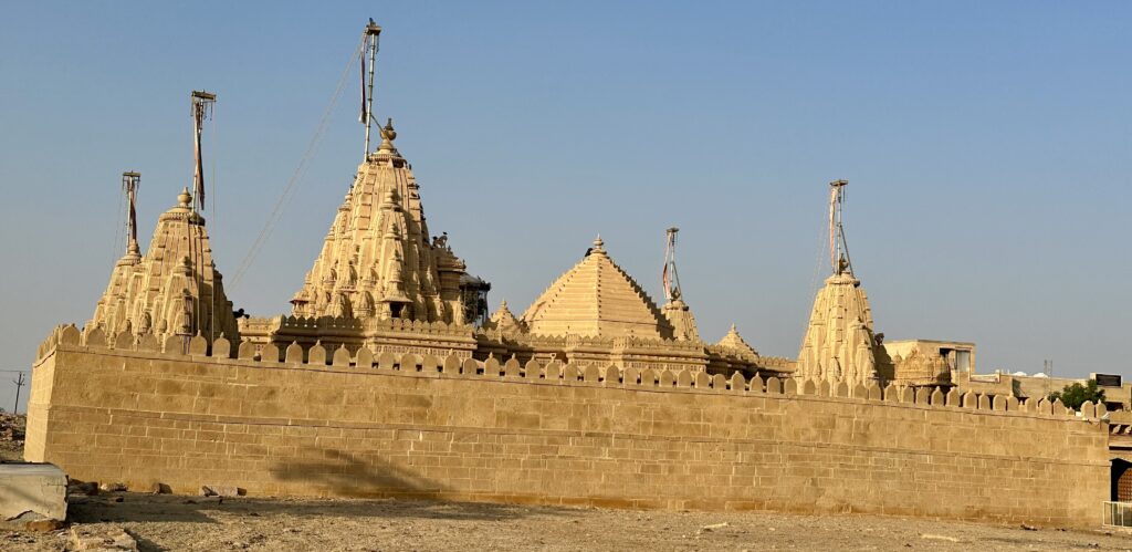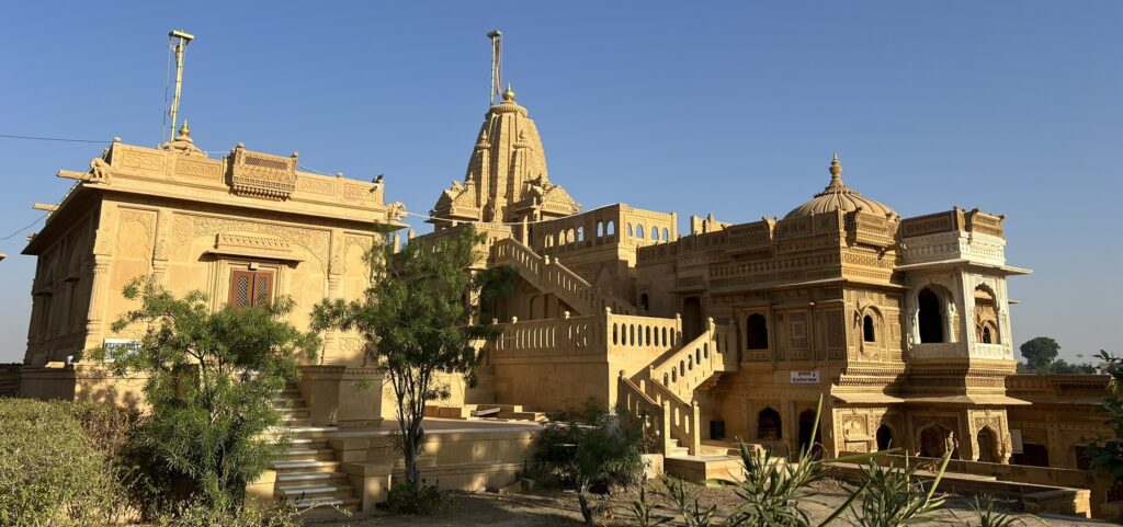 Amar Sagar Jain temple – was built in the 16th century and is dedicated to Lord Adinatha, the first Tirthankara of Jainism. Located adjacent to the famous Amar Sagar Lake, it features beautiful carvings, intricate sculptures, and ornate marble work that reflect the rich Jain architectural style. One of the highlights of this temple is its peaceful setting, away from the hustle and bustle of Jaisalmer city, making it an ideal spot for quiet reflection. There was no water in the Amar Sagar Lake at the time of our visit in November 2025.