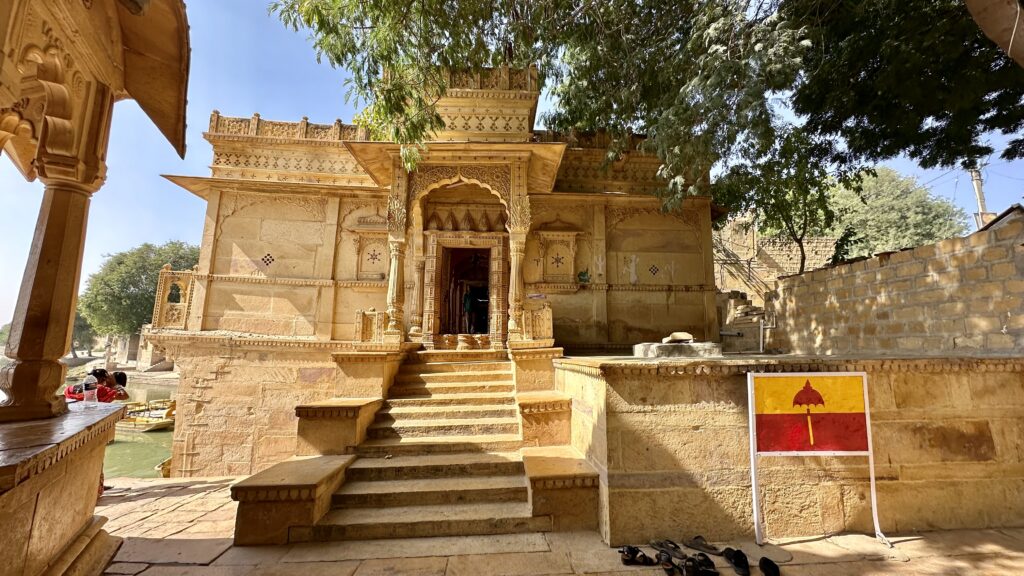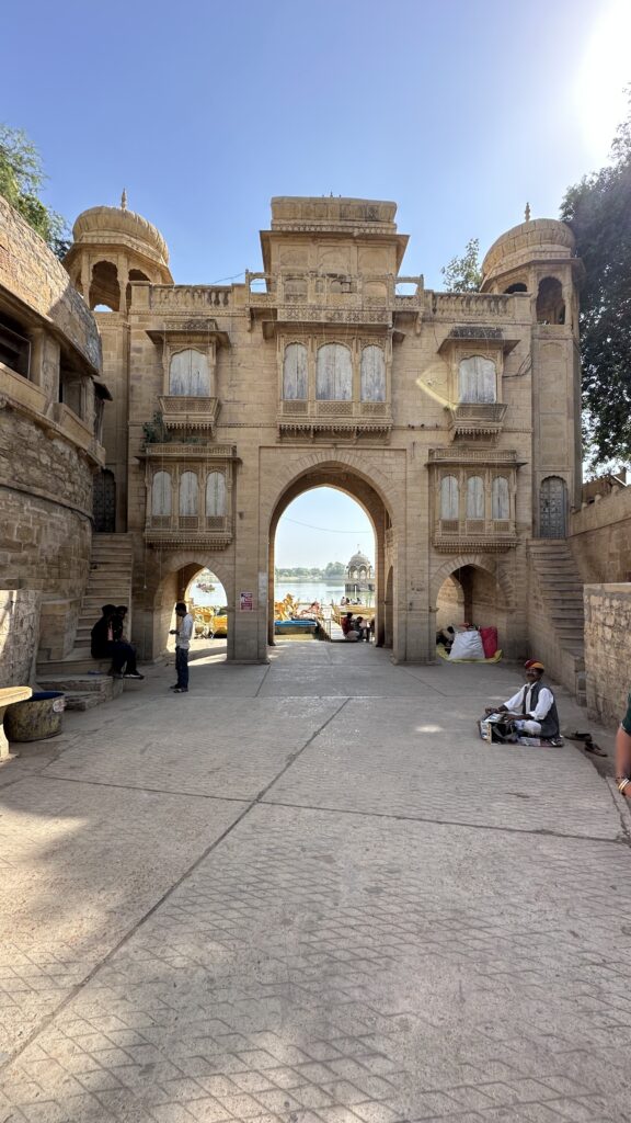 Gadisar Lake – A man-made lake, rebuilt in the 14th century by Maharawal Gadsi Singh, served as Jaisalmer’s main source of water. It is surrounded by sandstone ghats (steps), chhatris (cenotaphs), small temples and shrines, and intricately carved architectural elements, constructed by kings and wealthy patrons over the centuries. The main entrance to the lake is through a carved sandstone gateway called Tilon‑Ki‑Pol, which, according to legend, was built by a courtesan, so, the Maharawal of Jaisalmer never crossed it. Around the lake, one can also find 500-year-old cenotaphs of Jaisalmer’s businessmen, as well as the Shiva temple, Gaz Mandir.