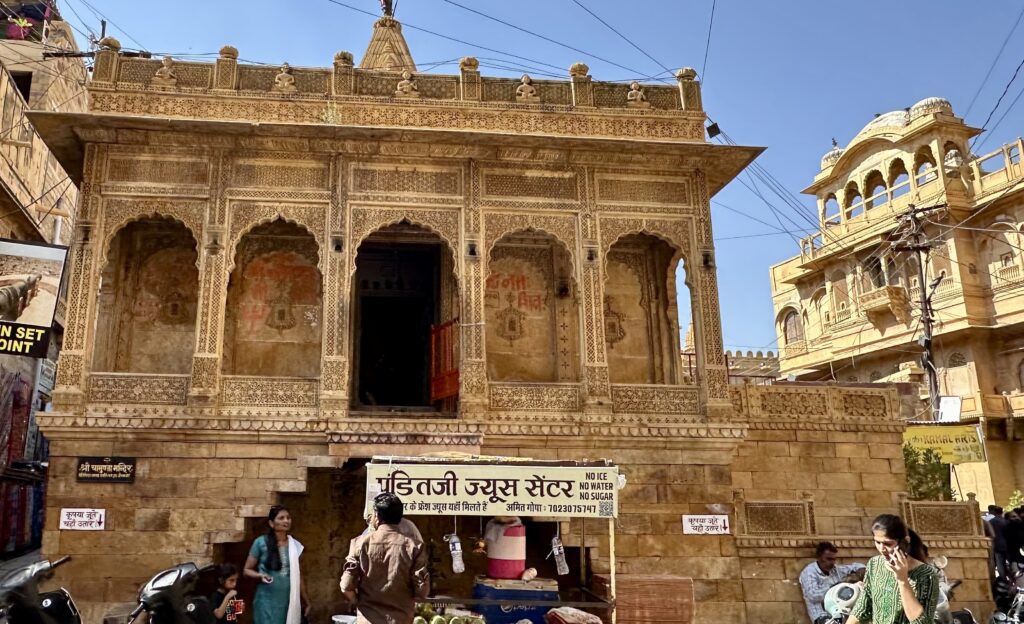 Jaisalmer Fort, Shri Chamunda Mandir – is a revered Hindu temple dedicated to Goddess Chamunda, a fierce form of Durga. The temple’s architecture is a blend of intricate carvings and traditional Rajasthani design, with detailed sculptures adorning its walls and pillars. The main shrine houses a black stone idol of Goddess Chamunda, believed to protect the city and its people.
