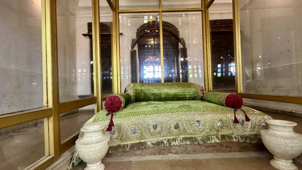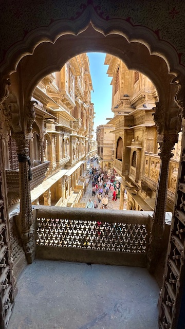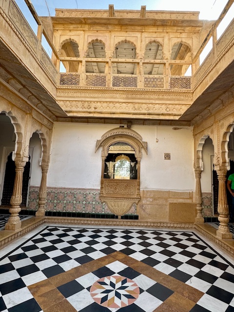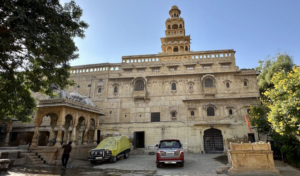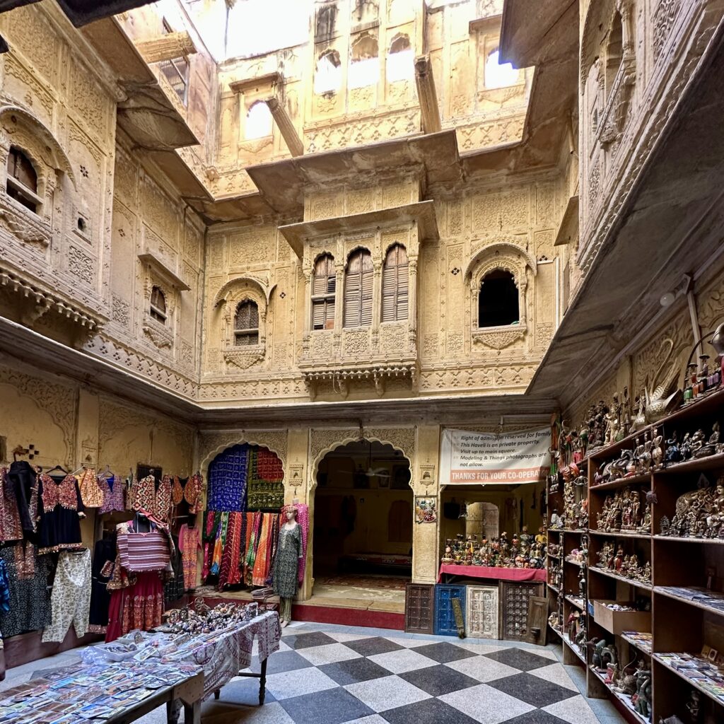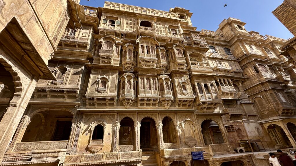Salim Singh ki Haveli – was built in 1815 by Salim Singh, the prime minister of the kingdom when Jaisalmer was the capital. The haveli boasts a fusion of Mughal and Rajput styles, showcasing the region’s rich history and craftsmanship. The striking Peacock Window (Mor Chowk) is one of its standout features, adding to the haveli’s unique charm. We were only able to check out this haveli from outside as it is a private residence.