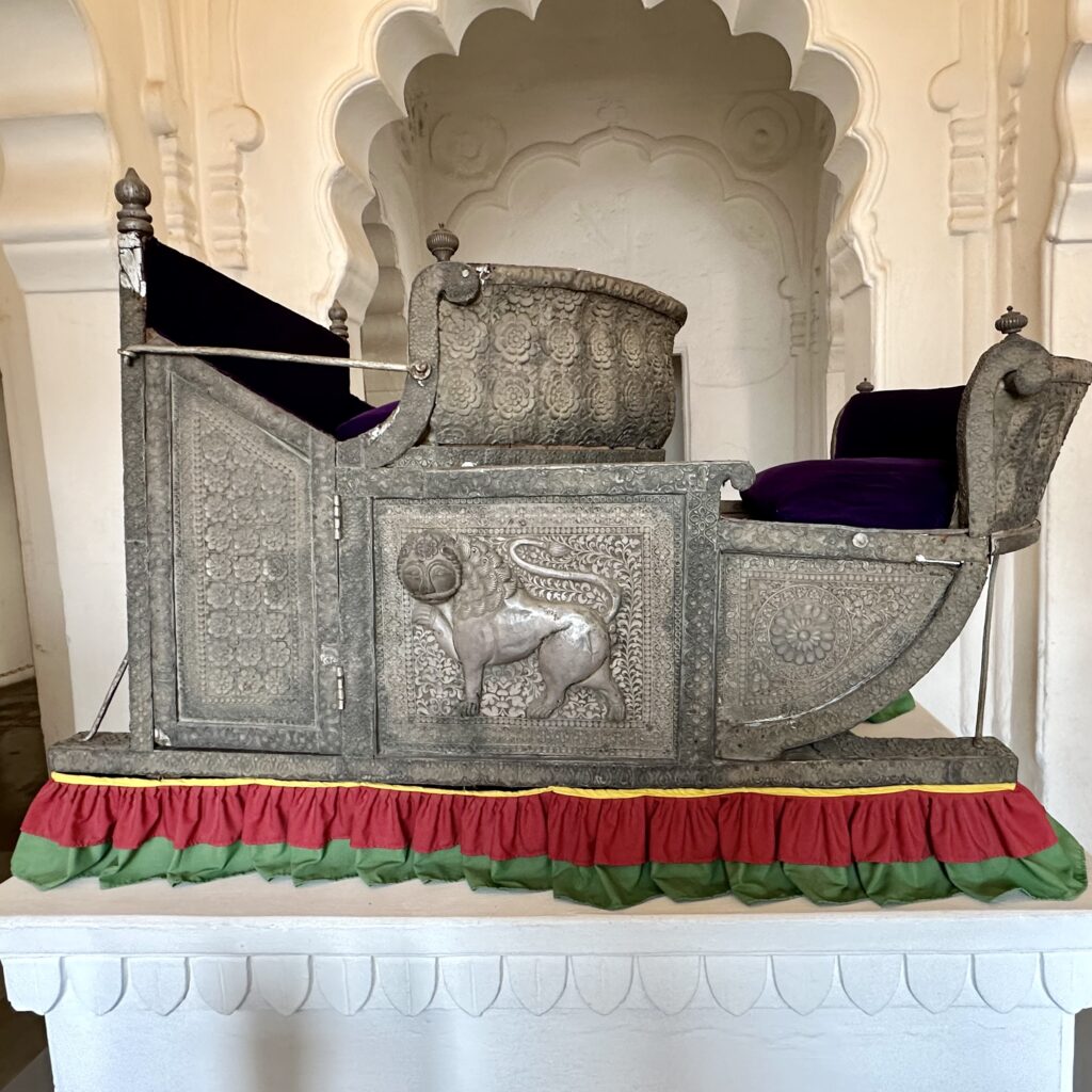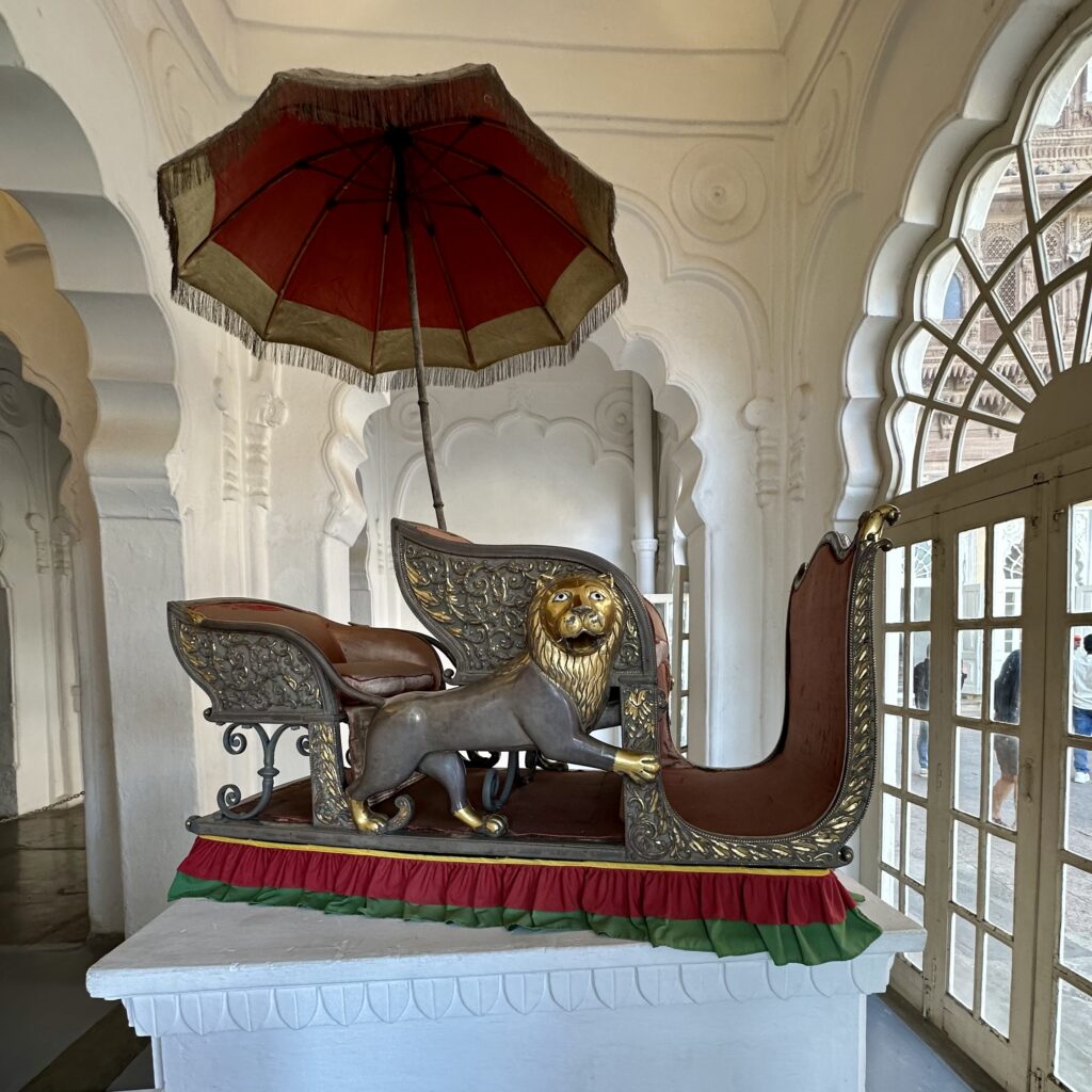 The fort houses an impressive museum with collections of weapons, paintings, and the beautifully curated Howdah Gallery. A howdah is a large, decorated seat or carriage that is placed on the back of an elephant.