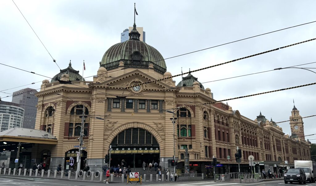 Flinders Street Station – We began our first day in Melbourne with a short 10-minute walk from our hotel to the Flinders Street Station, located at the corner of Flinders and Swanston Streets. Completed in 1910, this historic station is Australia’s oldest and busiest, known for its distinctive yellow façade, copper dome, and famous entrance clocks. Designed in the French Renaissance style, it serves as a major transport hub for Melbourne’s rail network and handles over 110,000 commuters daily. It also features one of the world’s longest railway platforms, measuring 708 meters.