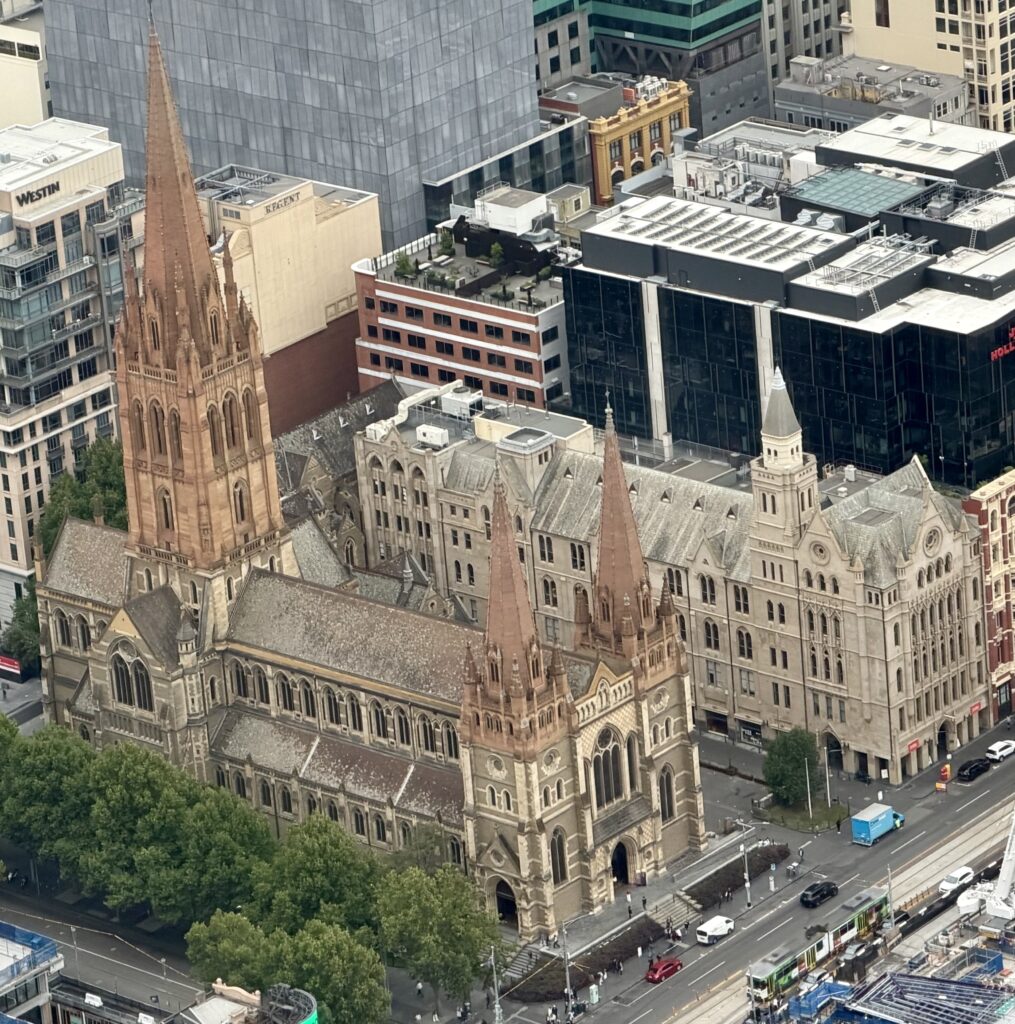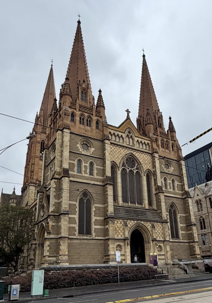 St Paul Cathedral – is located directly opposite Flinders Street Station and is the largest Anglican cathedral in Australia and the seat of the Archbishop of Melbourne. Designed by William Butterfield in the Gothic Revival style, it was completed in 1891, with its spires added later (1926–1932).