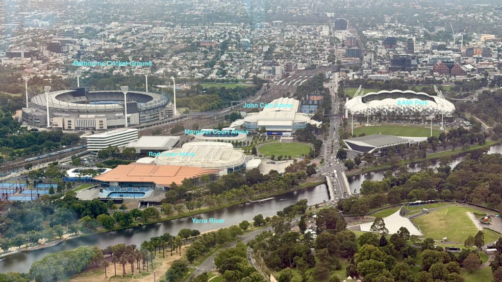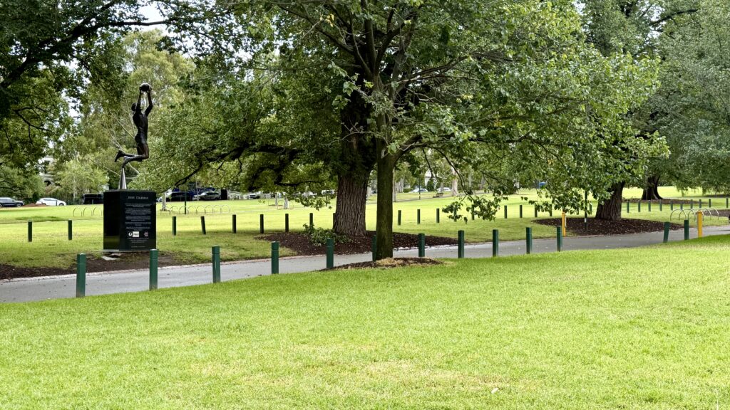 Yarra Park – After touring MCG, we walked through Yarra park which surrounds Melbourne Cricket Ground (MCG). The park features numerous statues of cricket legends like Dennis Lille, Shane Warne, Neil Harvey etc. The park also features tree-lined paths, open lawns, and footbridges connecting visitors to nearby venues and the Yarra River Trail.