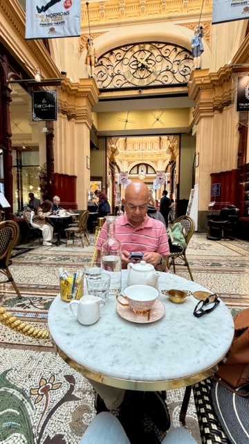 Sandridge Bridge is a historic structure, originally built to carry railway lines. The current bridge, about 178 metres long, was redeveloped in 2006 and now serves as a pedestrian and cycle path, featuring striking public art installations. We ended the day with dinner at a Greek restaurant along the promenade—fitting, as Melbourne is home to the largest Greek population outside of Greece.