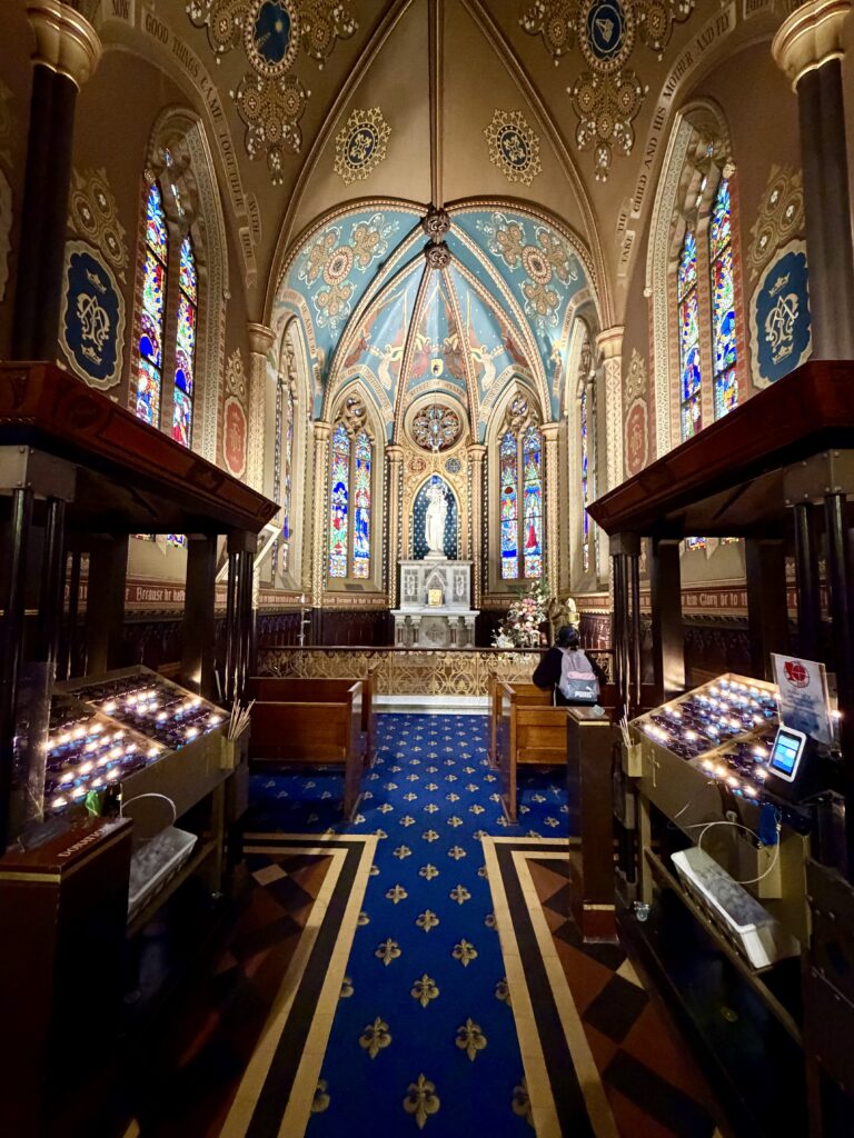 St Francis’ served as the cathedral for Melbourne’s first Catholic bishop, James Goold, from 1848 until 1868, when the diocesan seat moved to St Patrick’s Cathedral. Notable features include the cedar ceiling (installed in 1850) and the ornate Ladye Chapel (1856–1858), designed by George and Schneider with decoration by Le Gould and Souter.