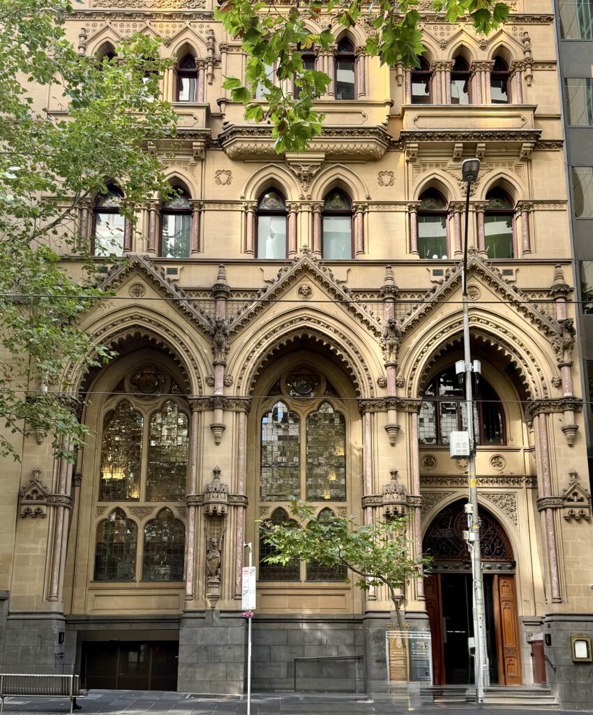 ANZ Gothic Bank – Completed in 1887, this Gothic Revival building was originally built as the head office of the English, Scottish and Australian Bank and later became part of ANZ’s headquarters. Today, it houses the ANZ Banking Museum, showcasing Australia’s banking history, and is famous for its richly decorated interior. Its exterior is adorned with carved statues, grotesques, and decorative tracery.