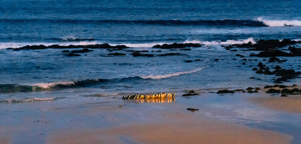 We were seated in our viewing area by 7:30pm to watch the sunset. Since it was a cloudy and rainy day, we didn’t get to watch the sunset. However, we were able to witness the amazing sight of penguins coming out of the water after sunset and parading back to their burrows. After they come out of the water, some penguins sprint across the beach toward the boardwalk, while others take their time and slowly waddle across the sand. After watching a few groups make their way across, we walked back to the entrance along the boardwalk, accompanied by the calls of the penguins.