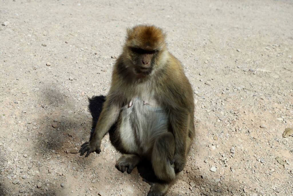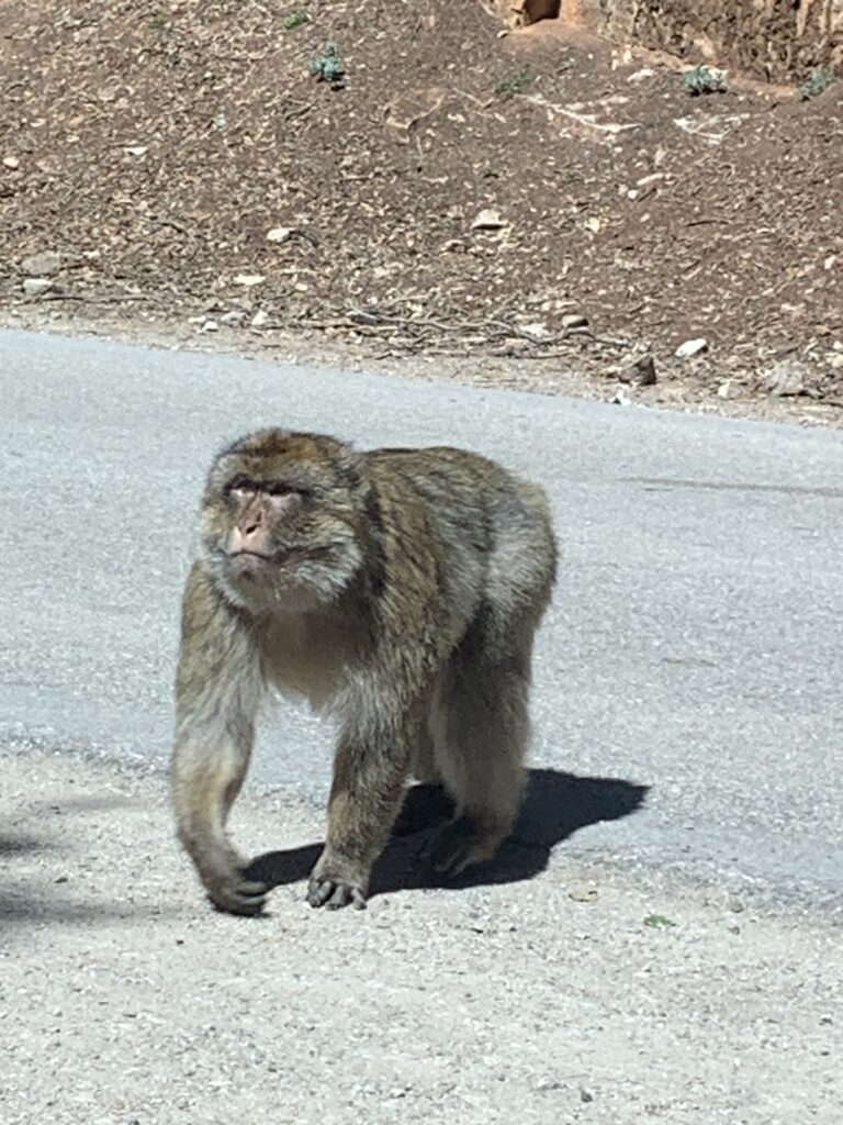 Monkeys on the road near Cedar forest of Azrou.