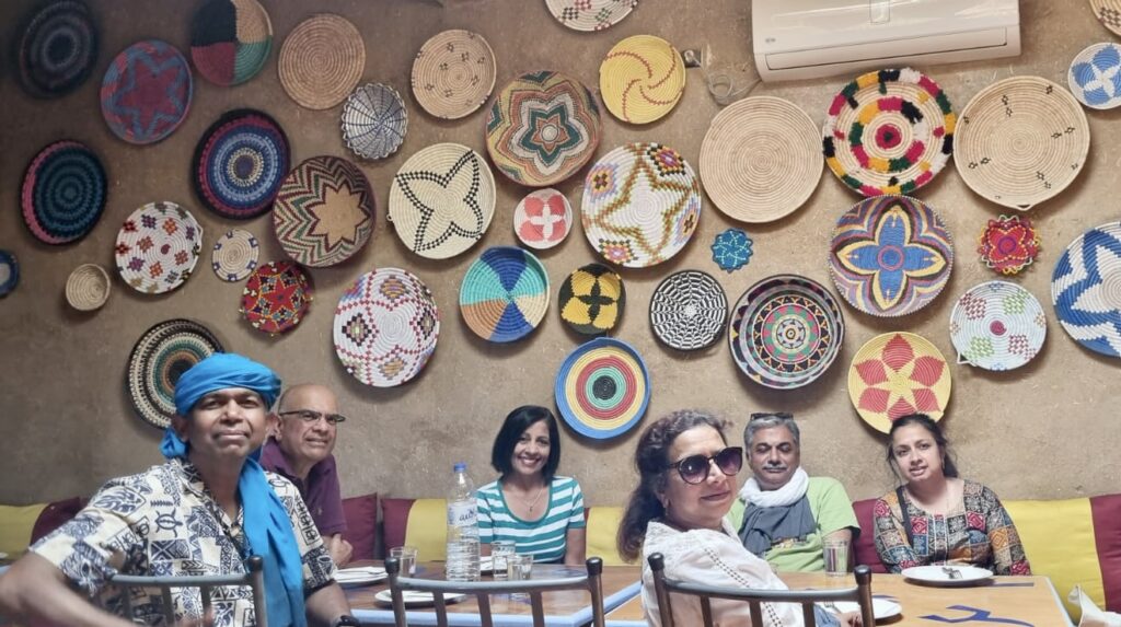 After listening to Gnawa music as well as trying to play some, we had lunch at the nearby Cafe Nora