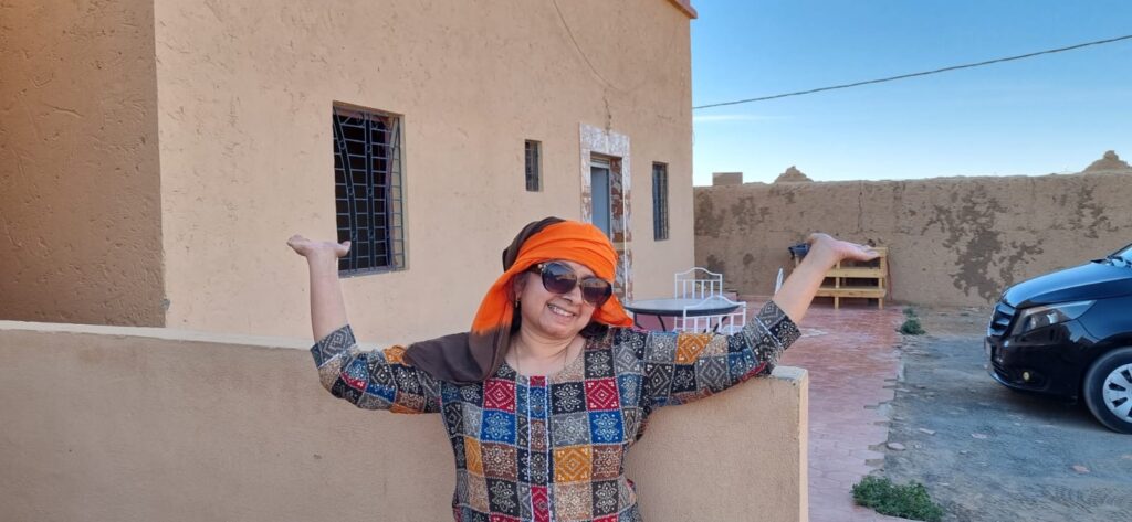 Khamlia (Village 7km from Merzouga) – Gnawa people(who are originally from Sudan) entertained us with their wonderful music. They have a music room in the complex where they let us play their drums with the help of an expert musician.
