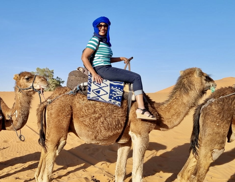 We got up early to enjoy sunrise and walk on the sand. We had breakfast after which we prepared to leave the glamping site. We had the option to either ride back on the camel or take the jeep back to Merzouga the next day. Majority of us decided to take the jeep. I don’t mind riding the camel if they are 20-30 min long and there are not too many downhill stretches.
