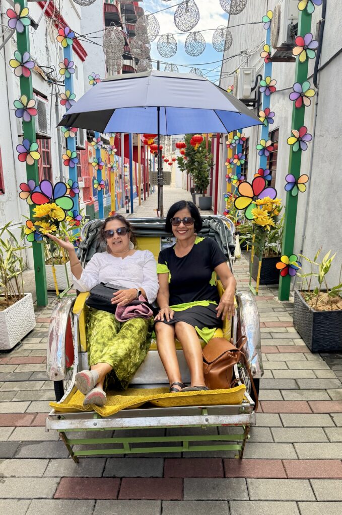 Exploring Interactive Murals in Colorful trishaw – Colorful traditional trishaws are one of the most charming sights in George Town, offering nostalgic rides through the UNESCO-listed heritage streets. These three-wheeled vehicles, often brightly decorated with flowers, lights, and cartoon characters, take visitors past historic landmarks and famous murals. They are commonly found along Armenian Street, Jalan Masjid Kapitan Keling, and near Chowrasta Market, waiting for passengers eager to explore the old town.