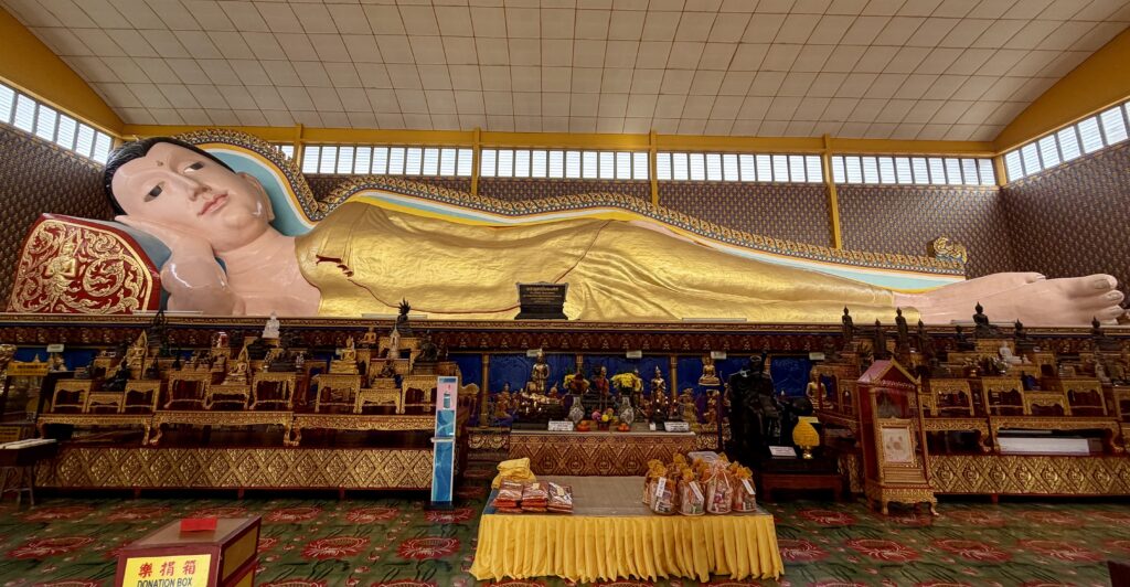 Wat Chayamangkalaram (Thai Buddhist Temple) – This temple was within walking distance of our hotel. It is a prominent Theravada Buddhist temple famous for housing one of the world’s longest reclining Buddha statues and is the oldest Siamese temple in the state, founded in 1845. The reclining Buddha statue named Phra Chaiya Mongkol is 33 m long.